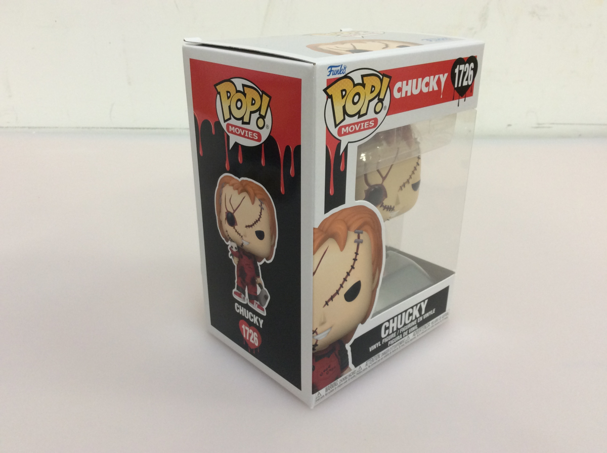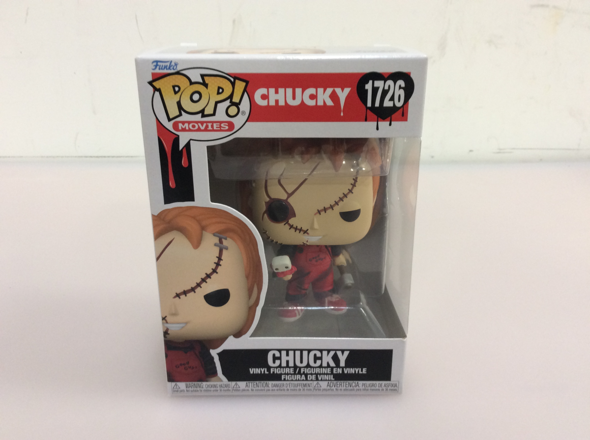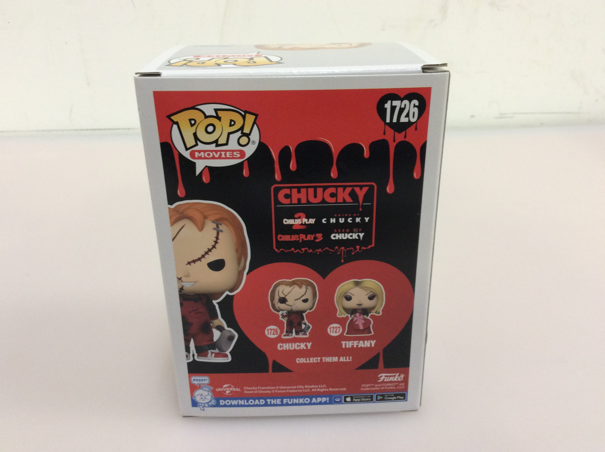 Carve up some room in your Chucky collection for Pop! Chucky! Reimagined in a festive red and black ensemble, this Valentines Day Pop! Chucky isnt interested in playing around; hes ready to stab his way into the heart of your Chucky lineup