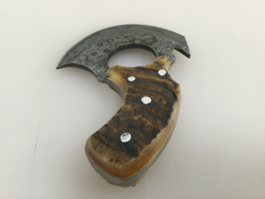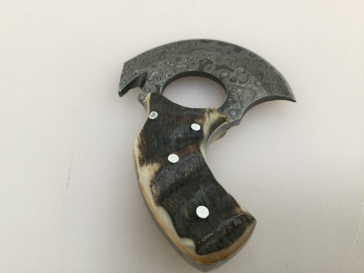 Knife4U Raindrop Damascus Steel EDC Handle Rams Horn