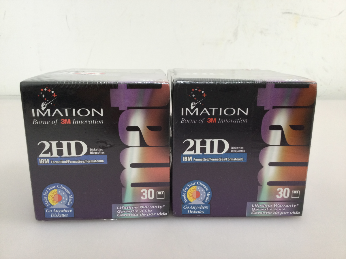 Brand New. These 1.44 MB diskettes are IBM formatted and are still sealed in their original packaging. They are compatible with any IBM compatible computer and come equipped with 2 HD features. The brand, Imation Corp, is well-known for producing high-quality blank media and these disks are no exception.